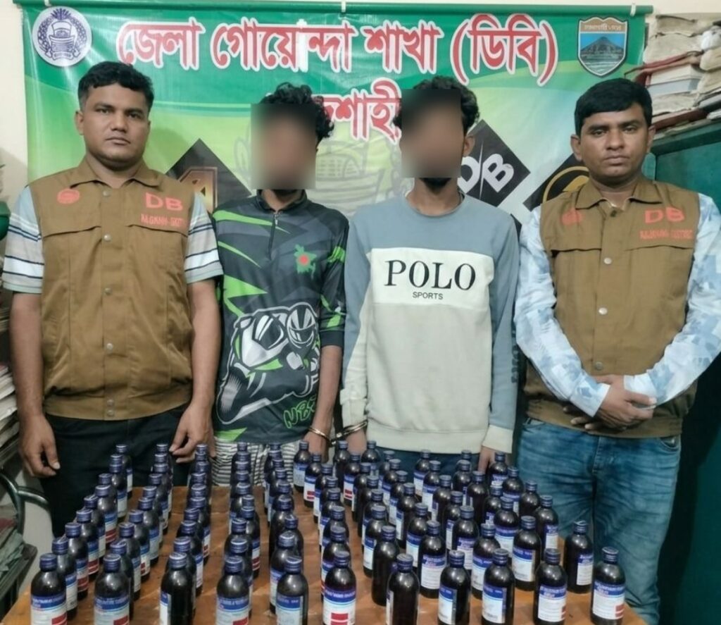 চারঘাটে ডিবির অভিযান ১০০ বোতল ফেন্সিডিলসহ ২ মাদক কারবারি গ্রেফতার