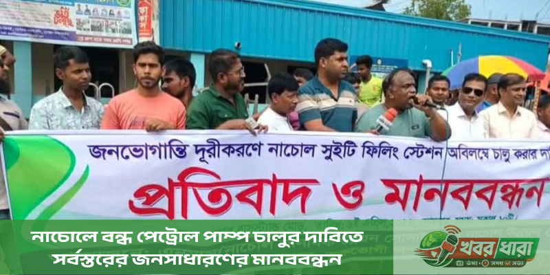 ‘নাচোল মানবিক উন্নয়ন সোসাইটি’ ও ‘নাচোল উন্নয়ন ফোরাম’-এর যৌথ উদ্যোগে আয়োজিত এই মানববন্ধনে এলাকার ভুক্তভোগী সাধারণ মানুষ ও বিভিন্ন সংগঠনের প্রতিনিধিরা অংশ নেন
