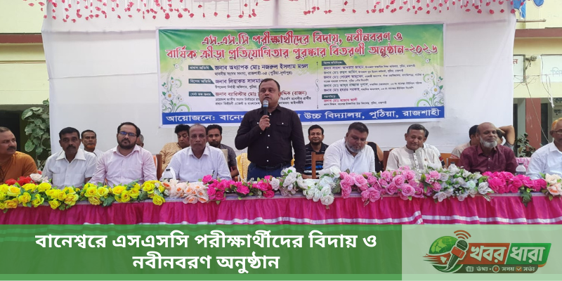 পুঠিয়া(রাজশাহী)প্রতিনিধি: রাজশাহীর পুঠিয়া উপজেলার বানেশ্বর ইসলামিয়া উচ্চ বিদ্যালয়ে এসএসসি পরীক্ষার্থীদের বিদায়, নবীনবরণ ও বার্ষিক ক্রীড়া প্রতিযোগিতার পুরস্কার বিতরণী অনুষ্ঠান-২০২৬ বর্ণাঢ্য আয়োজনের মধ্য দিয়ে অনুষ্ঠিত হয়েছে।