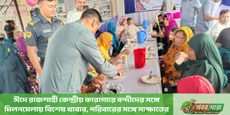 রাজশাহী প্রতিনিধিঃ পবিত্র ঈদ-উল-ফিতর উপলক্ষে রাজশাহী কেন্দ্রীয় কারাগারে বন্দীদের সঙ্গে এক মানবিক ও সৌহার্দ্যপূর্ণ মিলনমেলার আয়োজন করেছে কারা কর্তৃপক্ষ। ঈদের আনন্দ বন্দীদের মাঝেও ভাগাভাগি করে নিতে নেওয়া এই উদ্যোগে কারাগারের ভেতরে সৃষ্টি হয় উৎসবমুখর ও মানবিক পরিবেশ।