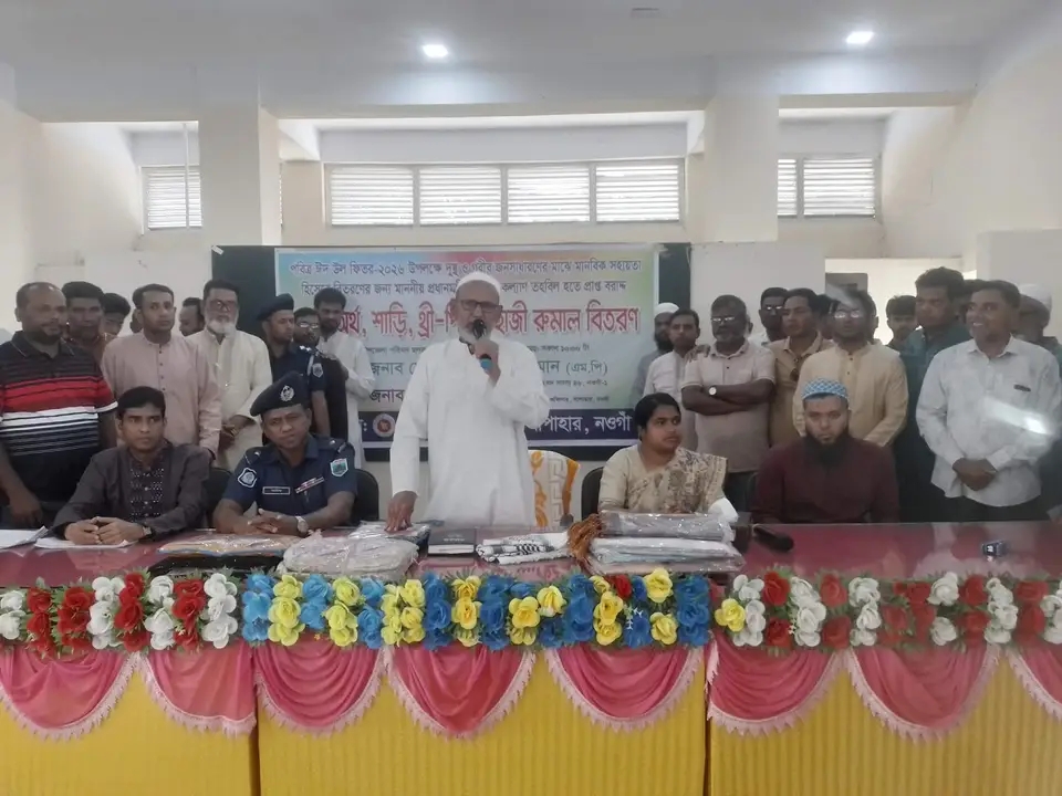এ সময় সাপাহার উপজেলার ৬ টি ইউনিয়নের ৩৯৫ জন উপকারভোগীর মাঝে শাড়ি ২০০ পিস, থ্রি-পিস ৩০ পিস, নগদ অর্থ ১৫০ জনের মধ্যে (জনপ্রতি ২০০০ টাকা করে মোট ৩ লক্ষ), হাজী রুমাল ১৫ পিস বিতরণ করা হয়।