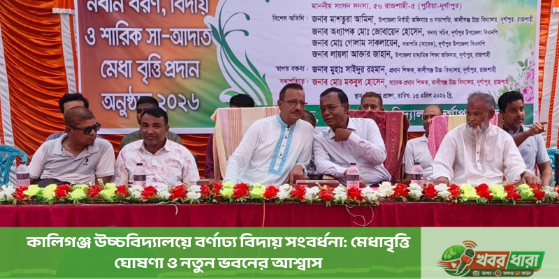 ‎দুর্গাপুরের কালিগঞ্জ উচ্চবিদ্যালয়ে এসএসসি ২০২৬ ব্যাচের বর্ণাঢ্য বিদায় সংবর্ধনা অনুষ্ঠিত হয়েছে। অনুষ্ঠানে মেধাবৃত্তি প্রদান ও নতুন একাডেমিক ভবন নির্মাণের ঘোষণা দেওয়া হয়।